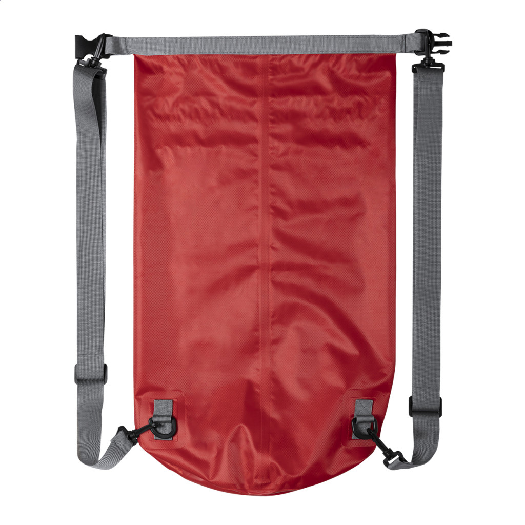 Vízálló hátitáska állítható vállpántokkal és műanyag csattal.