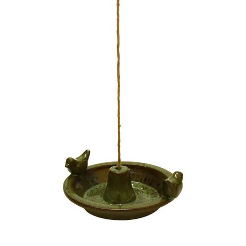 Zöld színű, madár mintás, felakasztható madáritató. Az egyre szárazabb nyarakon és zordabb teleken az állatok egyre kevesebb élelmet és vizet találnak, amin egy kis odafigyeléssen változtathatunk. Az etetés és itatás könnyebbséget és biztonságot jelent a környék madarainak, akik madárcsicsergéssel hálálják meg a gondoskodást. Anyaga kerámia. Hideg időjárás esetén nem ajánlott a terméket a szabadban hagyni, mivel a fagy okozhat sérülést vagy repedést a kerámia felületén.