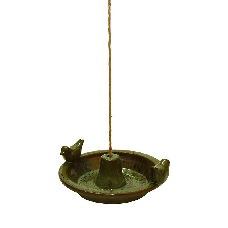 Függő kerámia madáretető tál, zöld, 30 cm átmérőjű