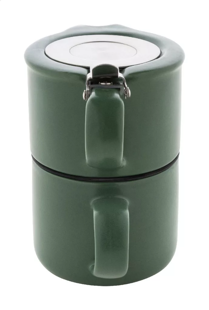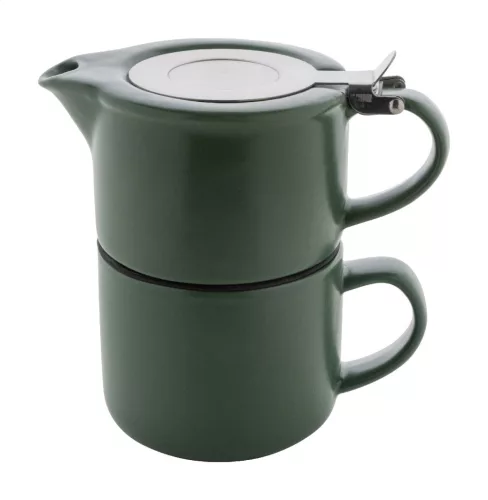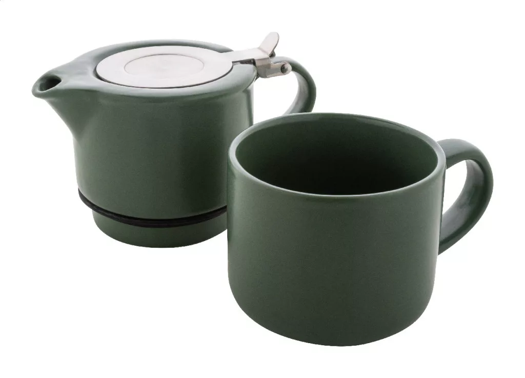 Kiváló minőségű kerámia teáskészlet matt felülettel. Tartalmaz egy teáskannát (430 ml) rozsdamentes acél fedéllel és teaszűrővel, amely illeszkedik a hozzá tartozó bögréhez (400 ml). Kraft papír dobozban.