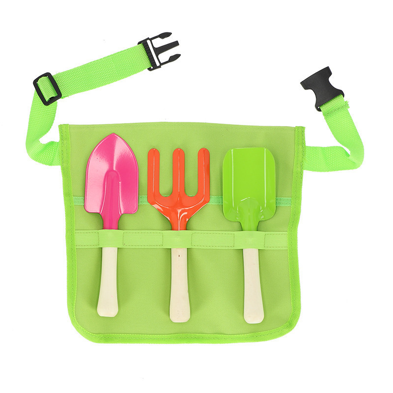 Praktikus kerti övtáska gyerekeknek, melyekben színes szerszámok is találhatók: kézi ásó, gereblye és lapát. A vidám színek és az eszközök játékos kialakítása gondoskodik a gyerekek felhőtlen, és biztonságos szórakozásáról a kertben. A gyerekek mindig szívesen veszik, ha egy kicsit részesei lehetnek a „felnőttek világának”, főként, ha közben szüleikkel lehetnek. Nincs ez másként még a kerti teendőkkel sem. Kifejezetten rájuk szabott, gyerek méretű kerti szerszámainkkal ők is garantáltan örömmel segítenek. A szerszámos övtáska csak a feltüntetett kombinációkban rendelhető. Az eszközök anyaga fém és nyárfa, míg a táska szövetből készült.