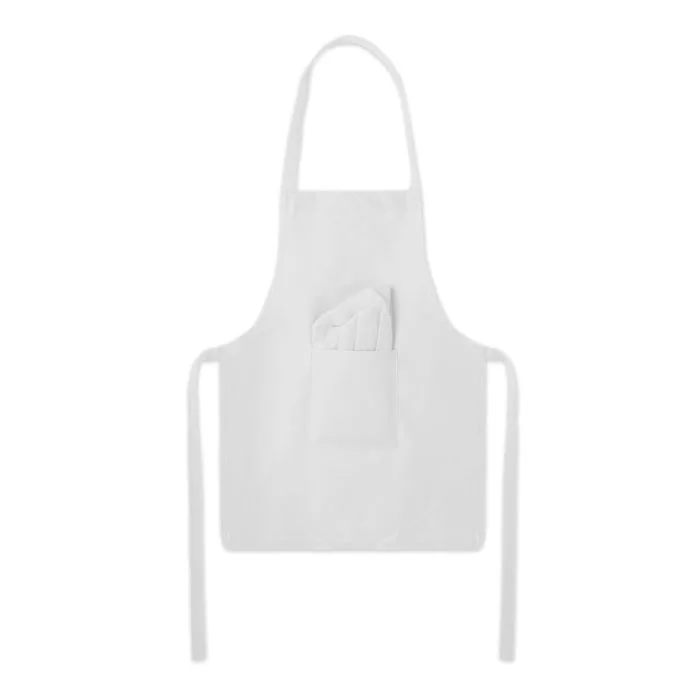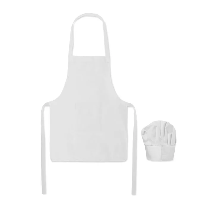 Gyermek szakácssapka és kötény szett RPET nemszőtt polipropilén 80 g/m² anyagból.