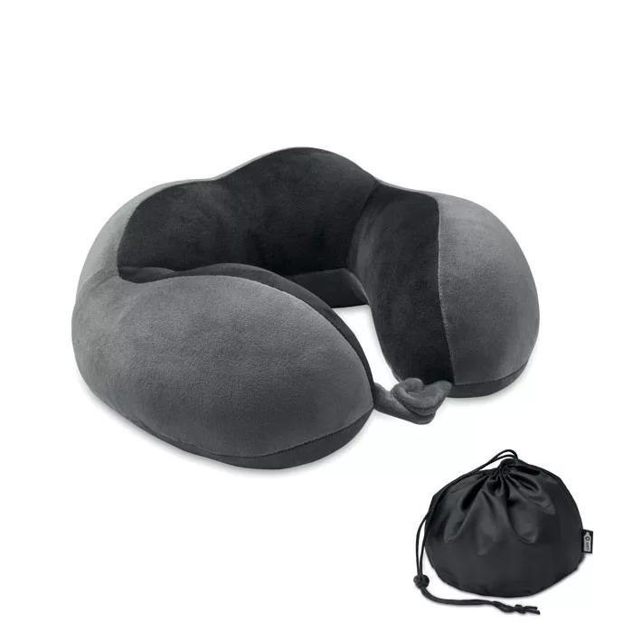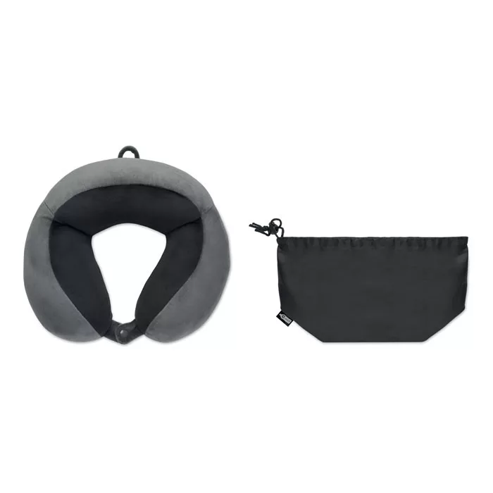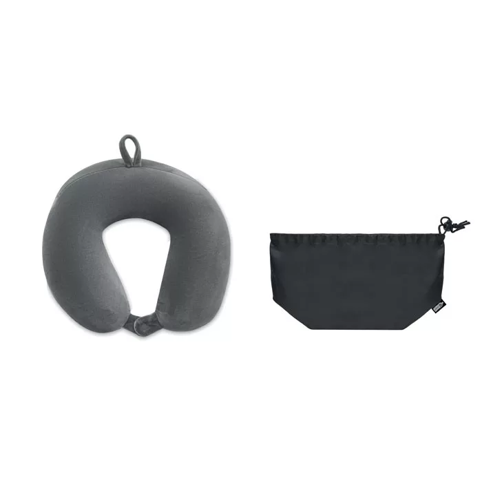 Utazó nyakpárna habszivacsból, puha spandexszel. 210D RPET poliészter, húzózsinóros tokkal.