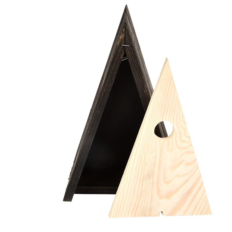 Háromszög alakú fa madárház, fekete tetővel, 27,5 cm