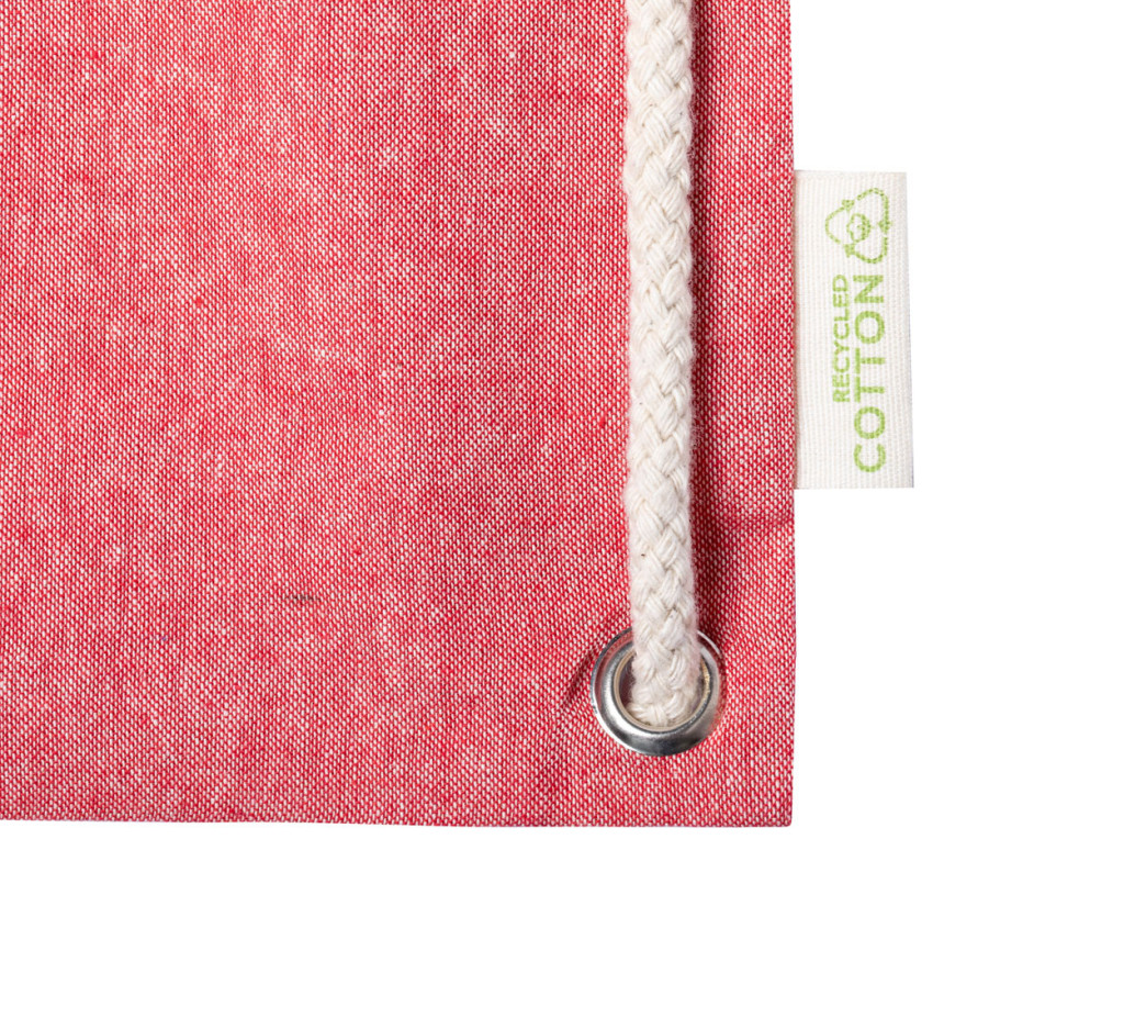 Pamut táska újrahasznosított pamutból, vastag fonott zsinórral és hosszú hordfüllel. Bevásárlótáskaként is használható. 100% újrahasznosított pamut, 140 g/m².