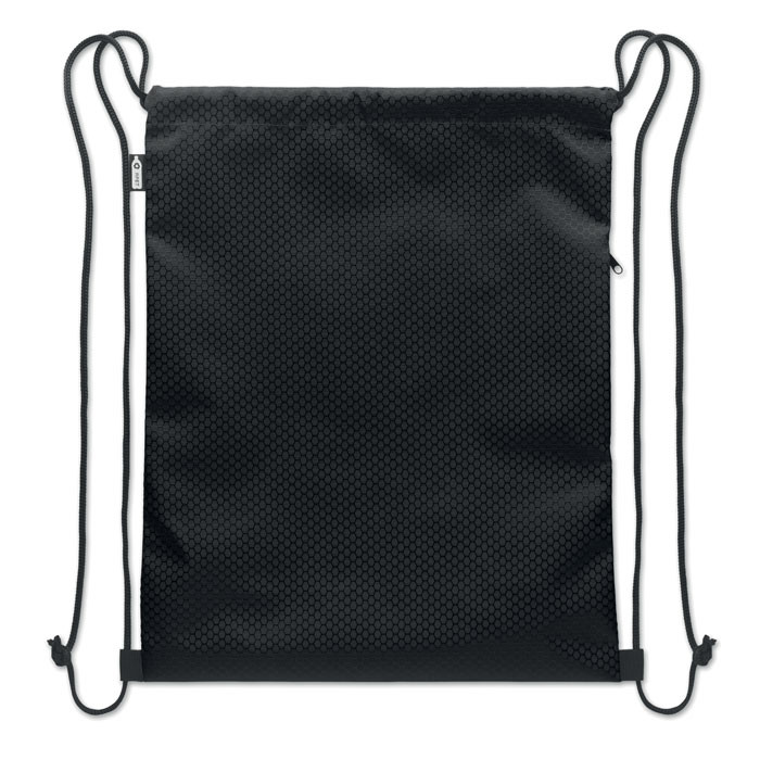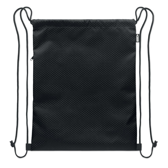 Húzózsinóros táska 420D RPET poliészterből, függőleges oldalsó cipzáras zsebbel, 210D RPET béléssel. Tartós zsinórokkal mindkét oldalon. Kapacitás: 4,5 l, maximális teherbírás: 5 kg.