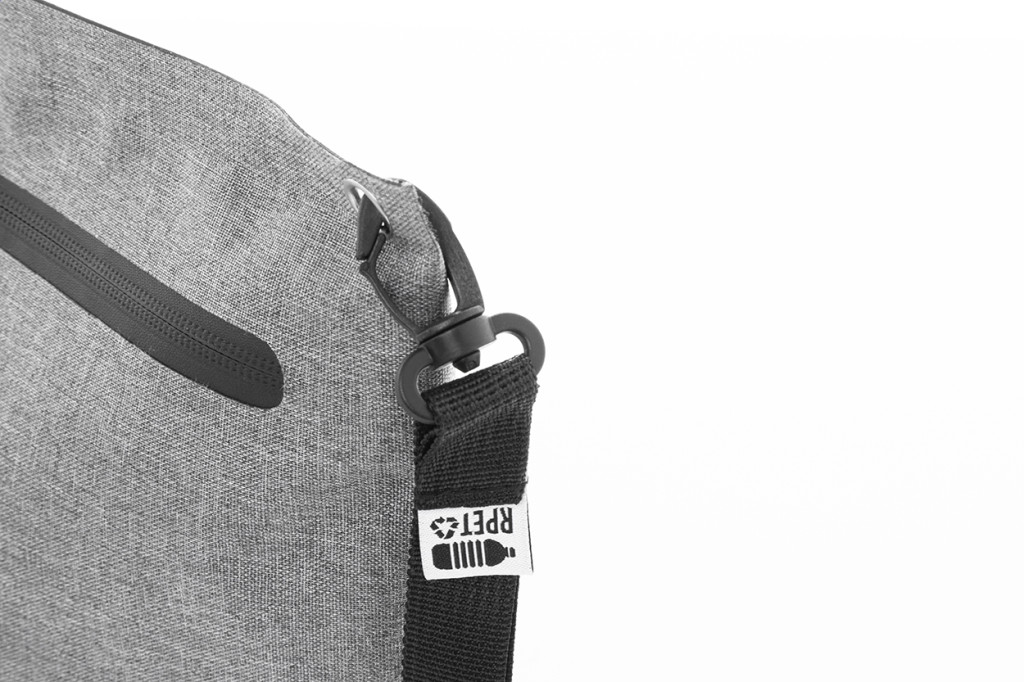 Vízálló, cipzáras kozmetikai táska 300D RPET poliészterből, karabineres csuklópánttal. Megkülönböztető RPET címkével.