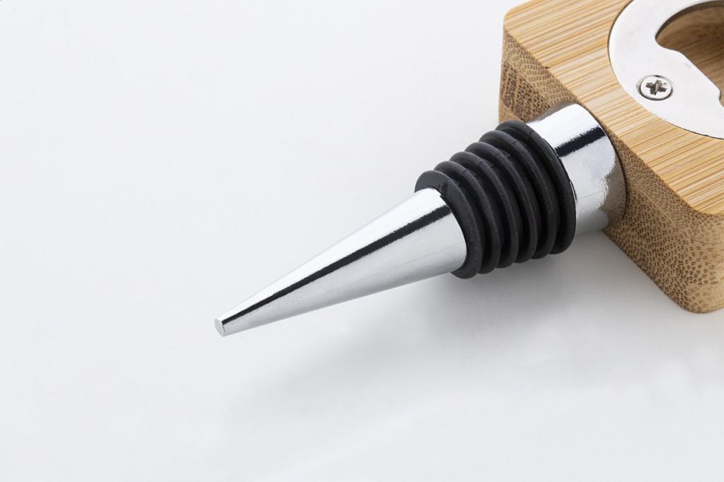 Fém boros dugó négyzet alakú bambusz üvegnyitóval.