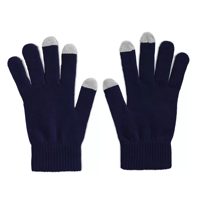 Akril kapacitív kesztyű okostelefonok kezeléséhez. Az ujjak végén található 3 érintőpont 30%-ban rozsdamentes acél szálakból áll.