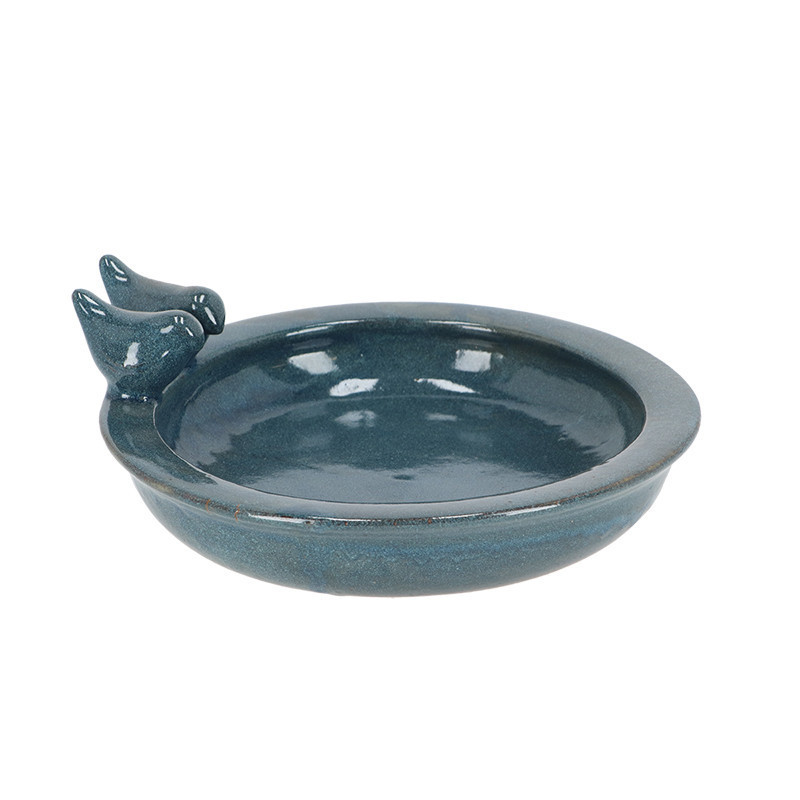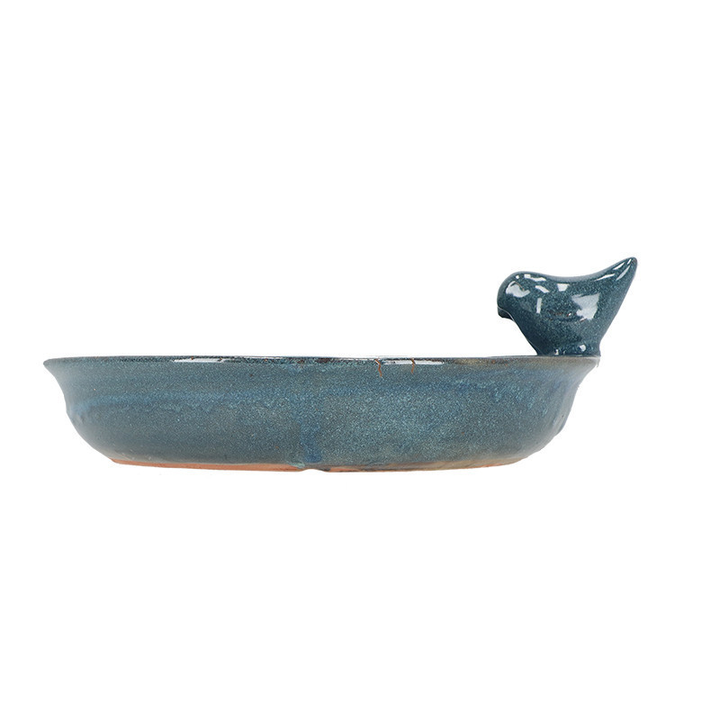 Kerámia madáretető- és itató madárdíszítéssel, kék színben. Ha szeretnél kedvükben járni a madaraknak, remek választás ez a kerti kiegészítő! A kerámiából készült tál egyszerre funkcionálhat madáretetőként, madáritatóként és madárfürdőként, mindamellett dekoratív tartozéka lehet minden madárbarát kertnek! Tartós, természetes anyagával, a csillogó petrolkék mázzal remekül mutat szabadtéren a növények közt. Tippünk: az eleség utántöltése mellett ne feledkezz meg a madáretető rendszeres tisztításáról sem! Az etető tisztítása különösen nedves időben fontos, így megelőzhető a betegségek terjedése a madarak között. Ha szívesen hallgatod a madárcsicsergést, és szeretnéd őket megfigyelni otthonod közelében, remek választás lesz ez a kerti madáretető! Hideg időjárás esetén nem ajánlott a terméket a szabadban hagyni, mivel a fagy okozhat sérülést vagy repedést a kerámia felületén.
