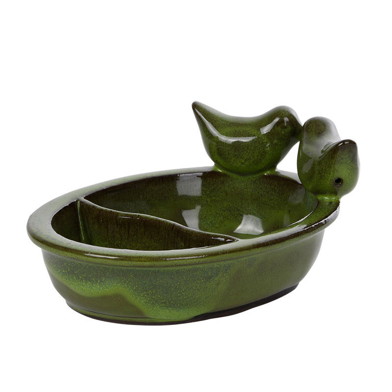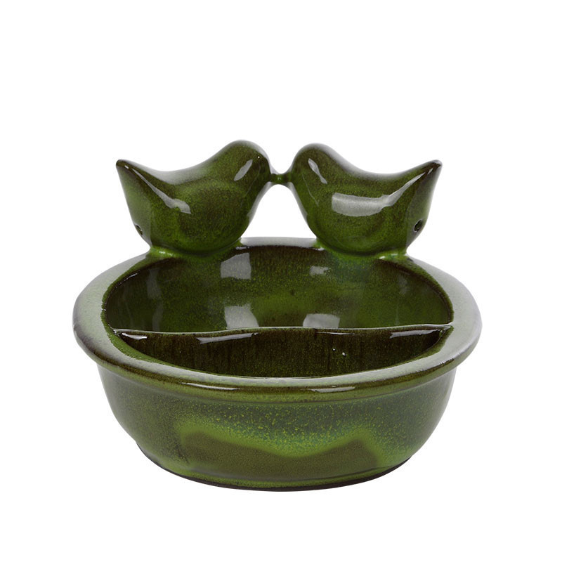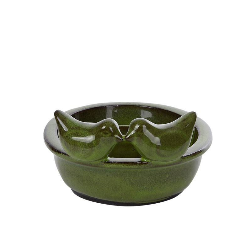 Kerámia madáretető és itató tál, zöld