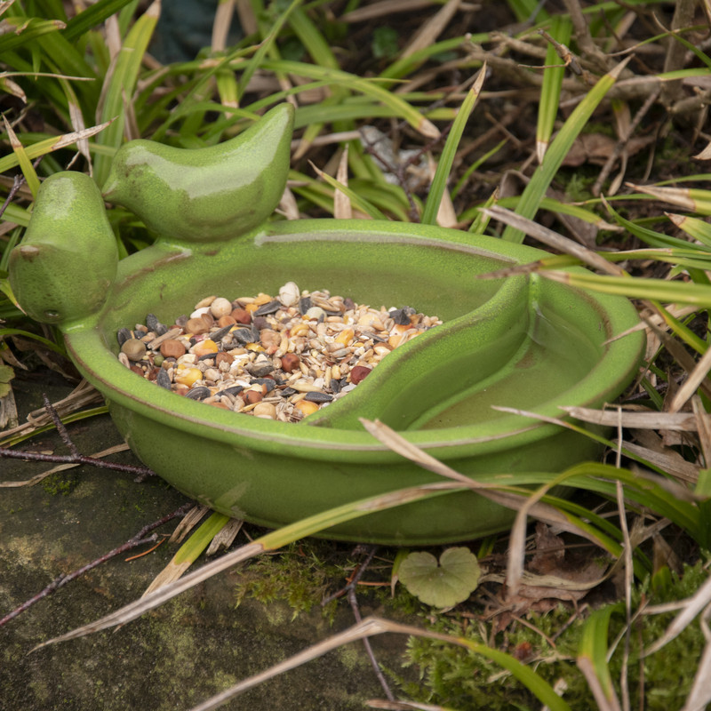 Kerámia madáretető- és itató madárdíszítéssel, zöld színben. Ha szeretnél kedvükben járni a madaraknak, remek választás ez a kerti kiegészítő! A két részre osztott kerámia tál egyszerre funkcionálhat madáretetőként, madáritatóként és madárfürdőként, mindamellett dekoratív tartozéka lehet minden madárbarát kertnek! Tartós, természetes anyagával, a csillogó zöld mázzal remekül mutat szabadtéren a növények közt. Tippünk: a utántöltés mellett ne feledkezz meg a madáretető rendszeres tisztításáról sem! Az etető tisztítása különösen nedves időben fontos, így megelőzhető a betegségek terjedése a madarak között. Ha szívesen hallgatod a madárcsicsergést, és szeretnéd őket megfigyelni otthonod közelében, remek választás lesz ez a többfunkciós kerti madáretető! Hideg időjárás esetén nem ajánlott a terméket a szabadban hagyni, mivel a fagy okozhat sérülést vagy repedést a kerámia felületén.