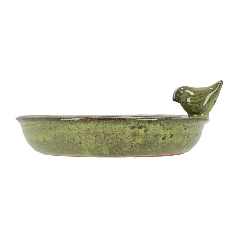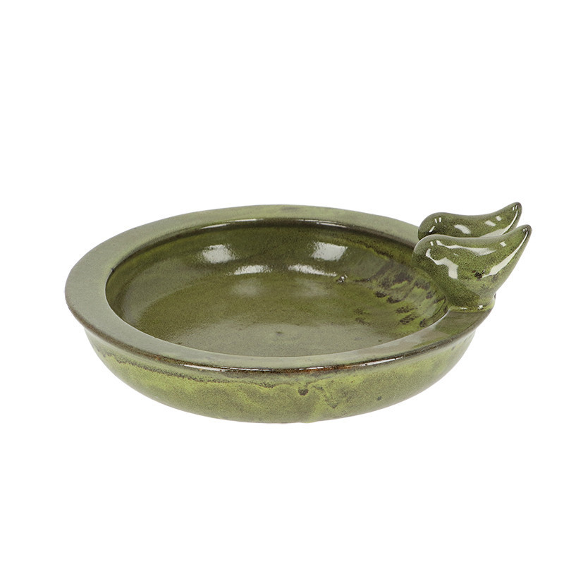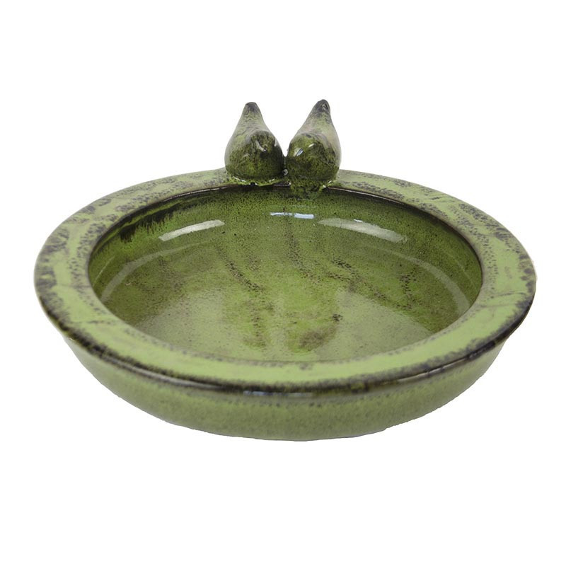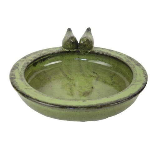 Kerámia madáretető- és itató madárdíszítéssel, kék színben. Ha szeretnél kedvükben járni a madaraknak, remek választás ez a kerti kiegészítő! A kerámiából készült tál egyszerre funkcionálhat madáretetőként, madáritatóként és madárfürdőként, mindamellett dekoratív tartozéka lehet minden madárbarát kertnek! Tartós, természetes anyagával, a csillogó oliv zöld mázzal remekül mutat szabadtéren a növények közt. Tippünk: az eleség utántöltése mellett ne feledkezz meg a madáretető rendszeres tisztításáról sem! Az etető tisztítása különösen nedves időben fontos, így megelőzhető a betegségek terjedése a madarak között. Ha szívesen hallgatod a madárcsicsergést, és szeretnéd őket megfigyelni otthonod közelében, remek választás lesz ez a kerti madáretető! Hideg időjárás esetén nem ajánlott a terméket a szabadban hagyni, mivel a fagy okozhat sérülést vagy repedést a kerámia felületén.