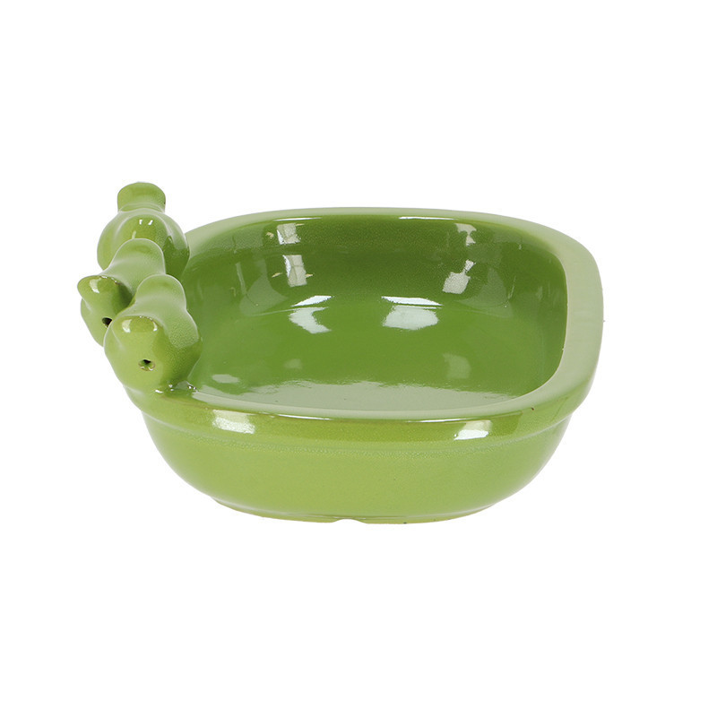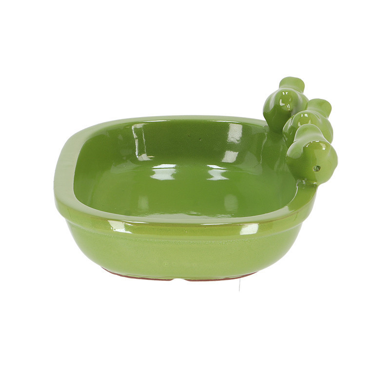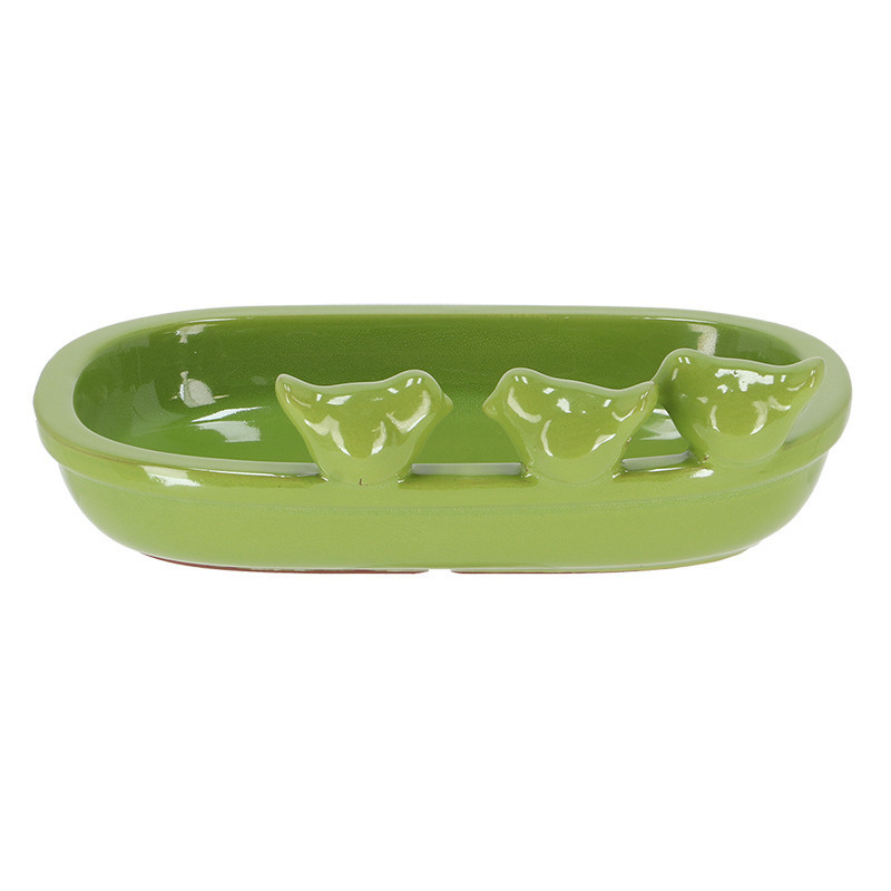 Kerámia madáritató és etető tál zöld színben. Nincs is annál jobb, mint amikor az ember reggel kipillant az ablakon, és a szeme előtt cinkék, verebek, pintyek, vörösbegyek repkednek. Elég az ablakba helyezni ezt a dekoratív madáritatót, és hamarosan megjelennek az első felfedezők. Ez az időtlen kerámia madáritató nemcsak különleges hangulatot kölcsönöz a kertnek, hanem biztonságos itatóhelyet és fürdőzést is kínál a madaraknak. Három madár már megtelepedett a peremen, a többi kismadár dolga, hogy mihamarabb kövessék példájukat. Hideg időjárás esetén nem ajánlott a terméket a szabadban hagyni, mivel a fagy okozhat sérülést vagy repedést a kerámia felületén.