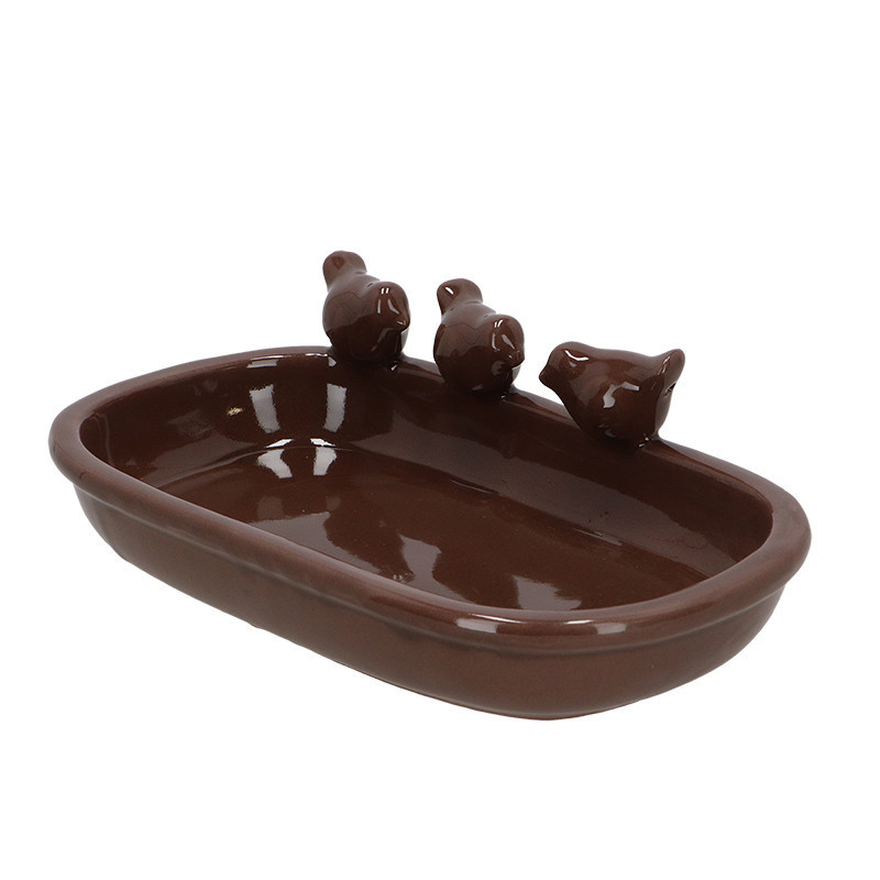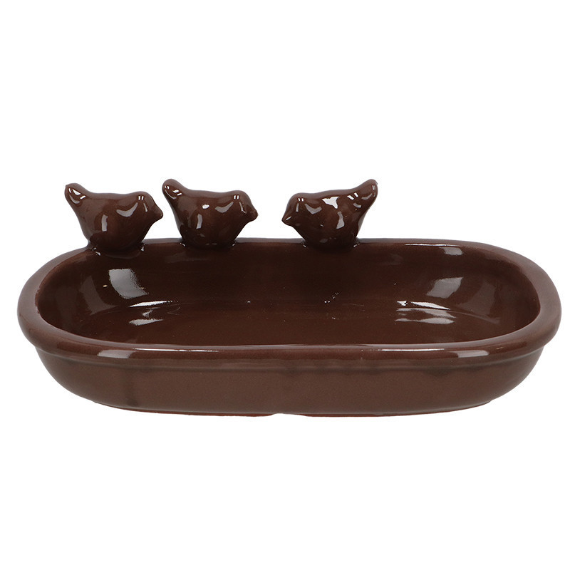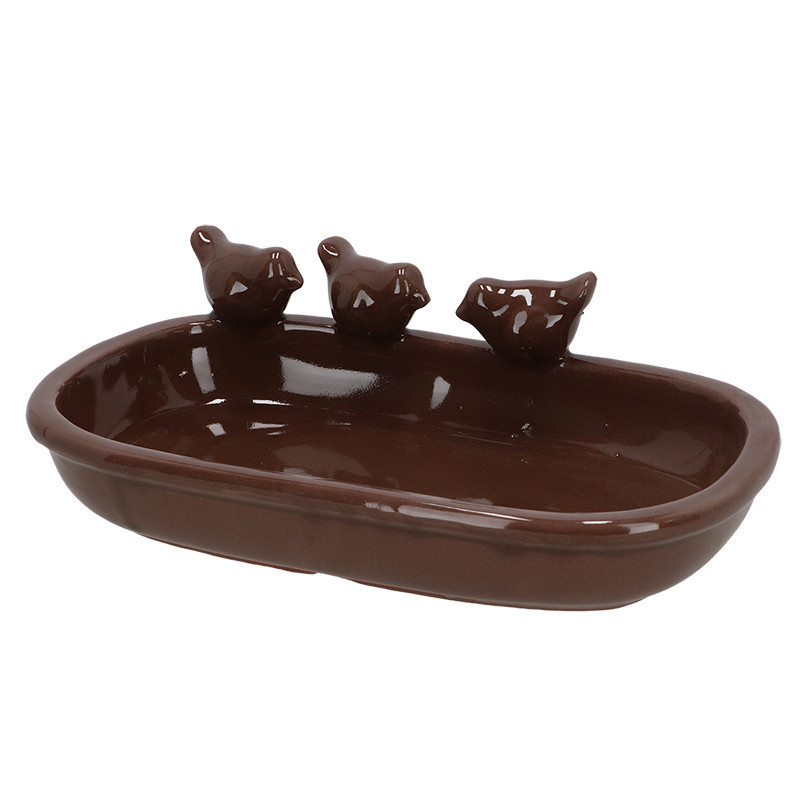 Kerámia madáritató és etető tál, ovális, barna