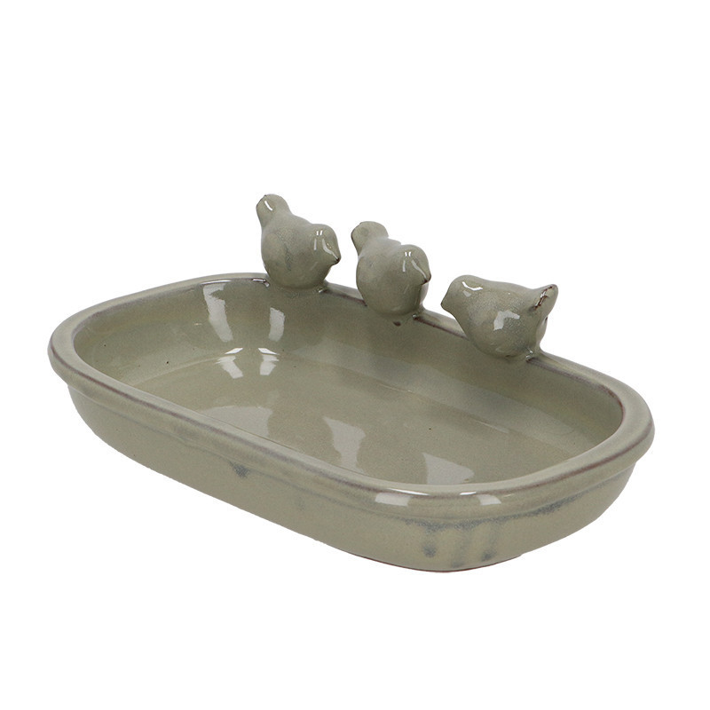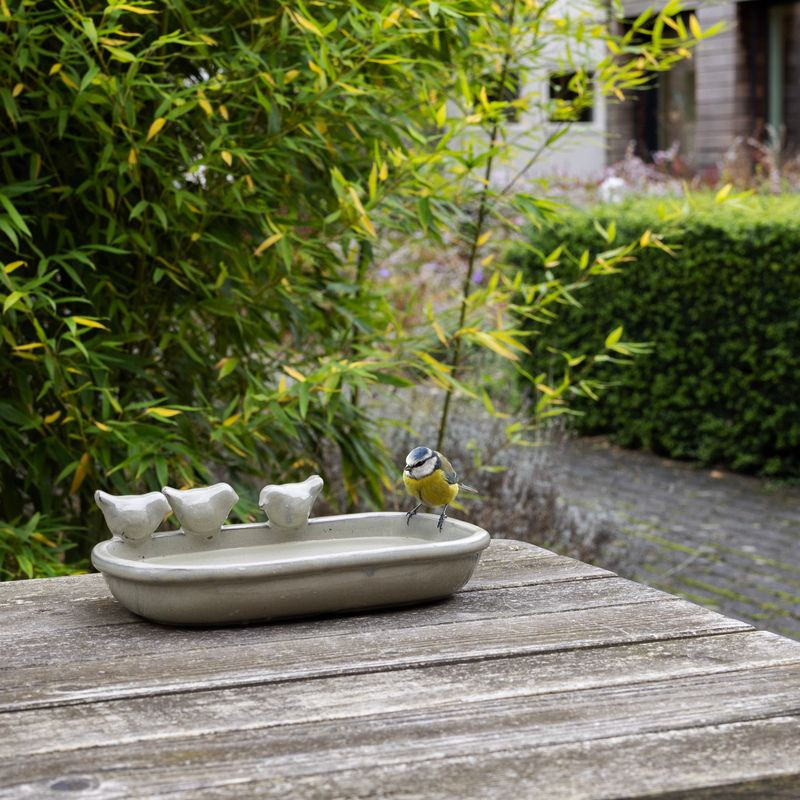 Tedd még hangulatosabbá a kerted ezzel a stílusos szürke kerámia madáritatóval és etető tálkával! Az ovális tál ideális választás madaraid számára, hogy friss vizet ihassanak, és fürödjenek is, így kétszeresen is hasznos lehet a természetbarát kertedben. A természetes kerámia anyag biztosítja a tartósságot és ellenáll a kültéri környezet viszontagságainak, miközben kifinomult megjelenést kölcsönöz.