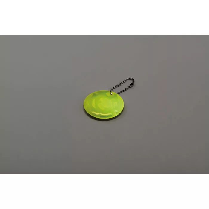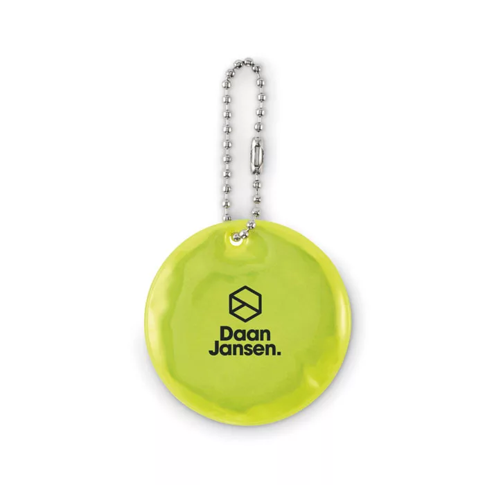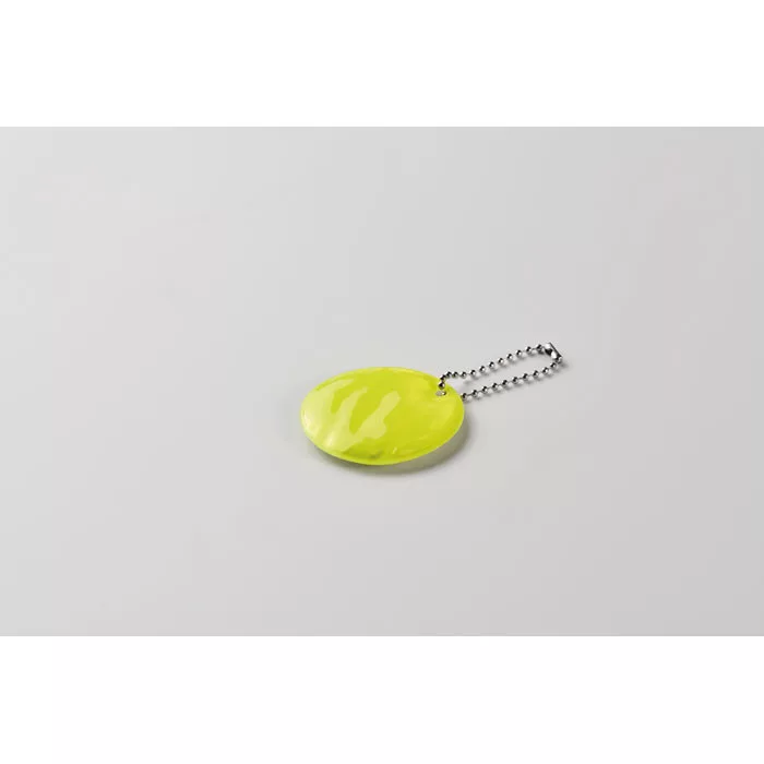 Kerek fényvisszaverő kulcstartó PVC-ből. Promóciós felhasználásra.