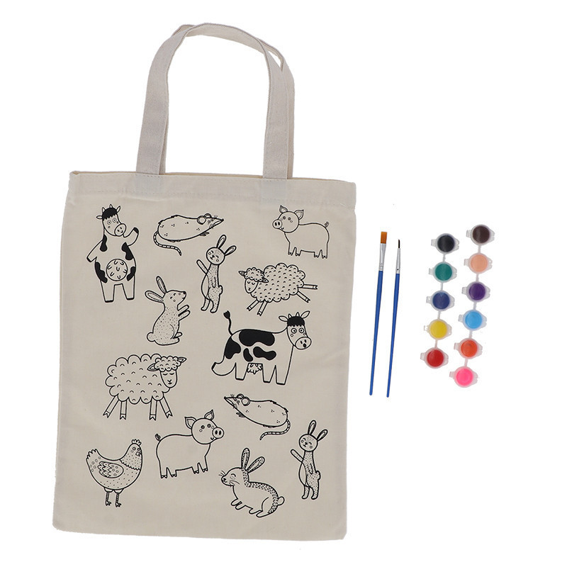 Kifesthető farm állatos vászon gyerek táska, festékkel és ecsettel – Alkotás minden napra!