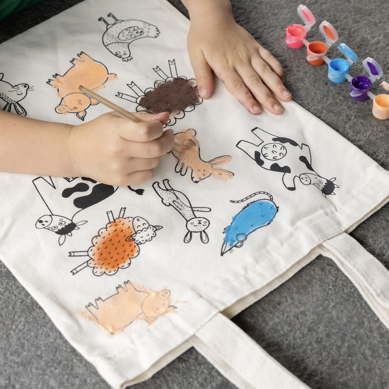 Ez a bájos, farm állatos mintájú vászontáska a kis művészek számára készült, akik szeretnek színezni és kreatívan alkotni. Az előre nyomott állatos minta és a csomagban található festékek és ecsetek segítségével gyermeke saját, egyedi táskát készíthet, amit büszkén viselhet a mindennapokban.