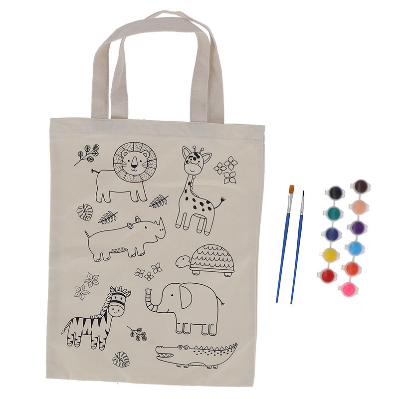 Kifesthető vadon élő állatos vászon gyerek táska, festékkel és ecsettel – Fedezd fel a dzsungel világát!
