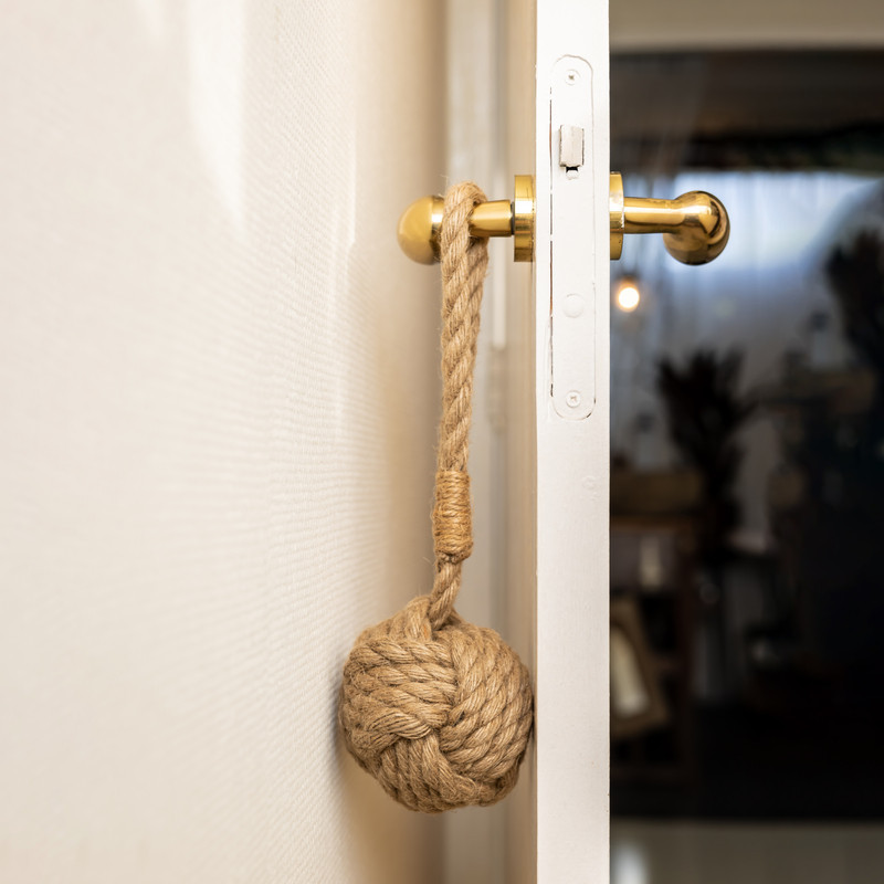Kilincsre akasztható ajtókitámasztó kötél. A hagyományos ajtókitámasztókkal ellentétben ez a darab nem a padlóra kerül, hanem a kilincsre. Segítségével megakadályozható, hogy az ajtó kárt tegyen a falban. Dekoratív kialakítása miatt szinte minden stílusú otthonban jól mutat.