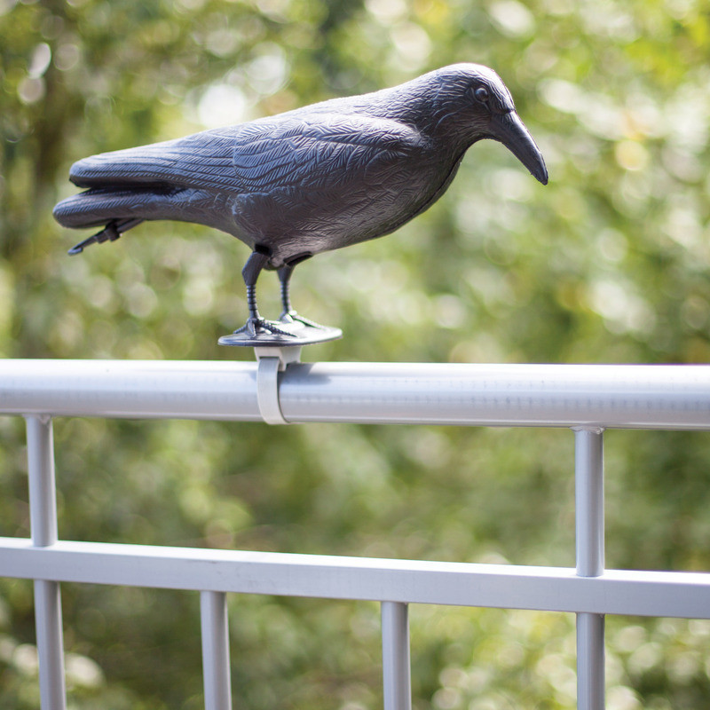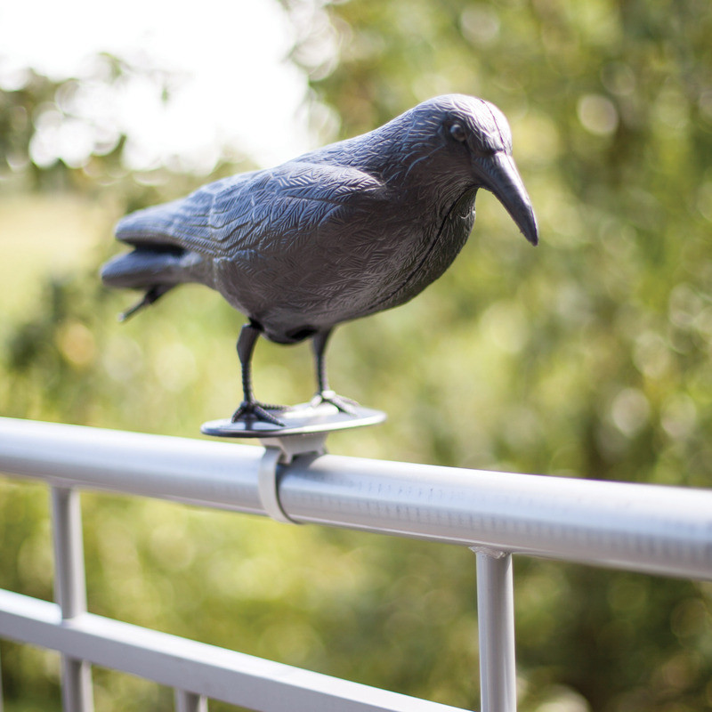 Műanyag, fekete varjút ábrázoló madárijesztő. Nem csupán dekoratív kiegészítő, de praktikus is, hiszen a lábánál fogva korlátra szerelhető, így riasztva el a galambokat balkonunkról. Segítségével elkerülhetjük, hogy a maradak az erkélyre vagy a teraszra piszkítsanak.