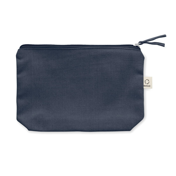 Újrahasznosított anyagból készült kozmetikai- vagy piperetáska (70% újrahasznosított pamut és 30% RPET poliészter), színazonos cipzárhúzóval. 320 g/m². Ez az anyag nyomtatás után zsugorodhat.