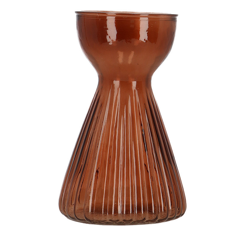 Krókusz növény gyökereztető bordázott üvegváza, 12,3 cm átmérőjű, barna