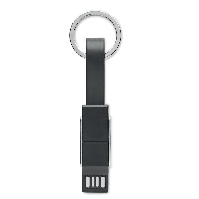 Kulcstartó 4 az 1-ben töltőkábellel. C-típusú, USB-A és mikro USB be- és kimenettel.