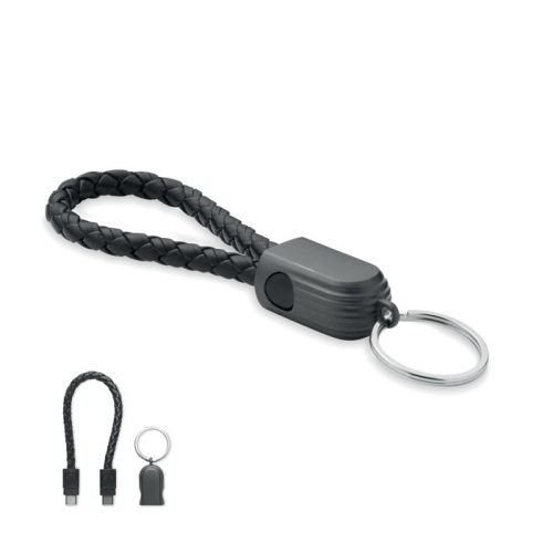 Kulcstartó hurok 60 W-os C-C típusú töltőkábelrel, PU-ból cinkötvözetből készült fonott részletekkel.