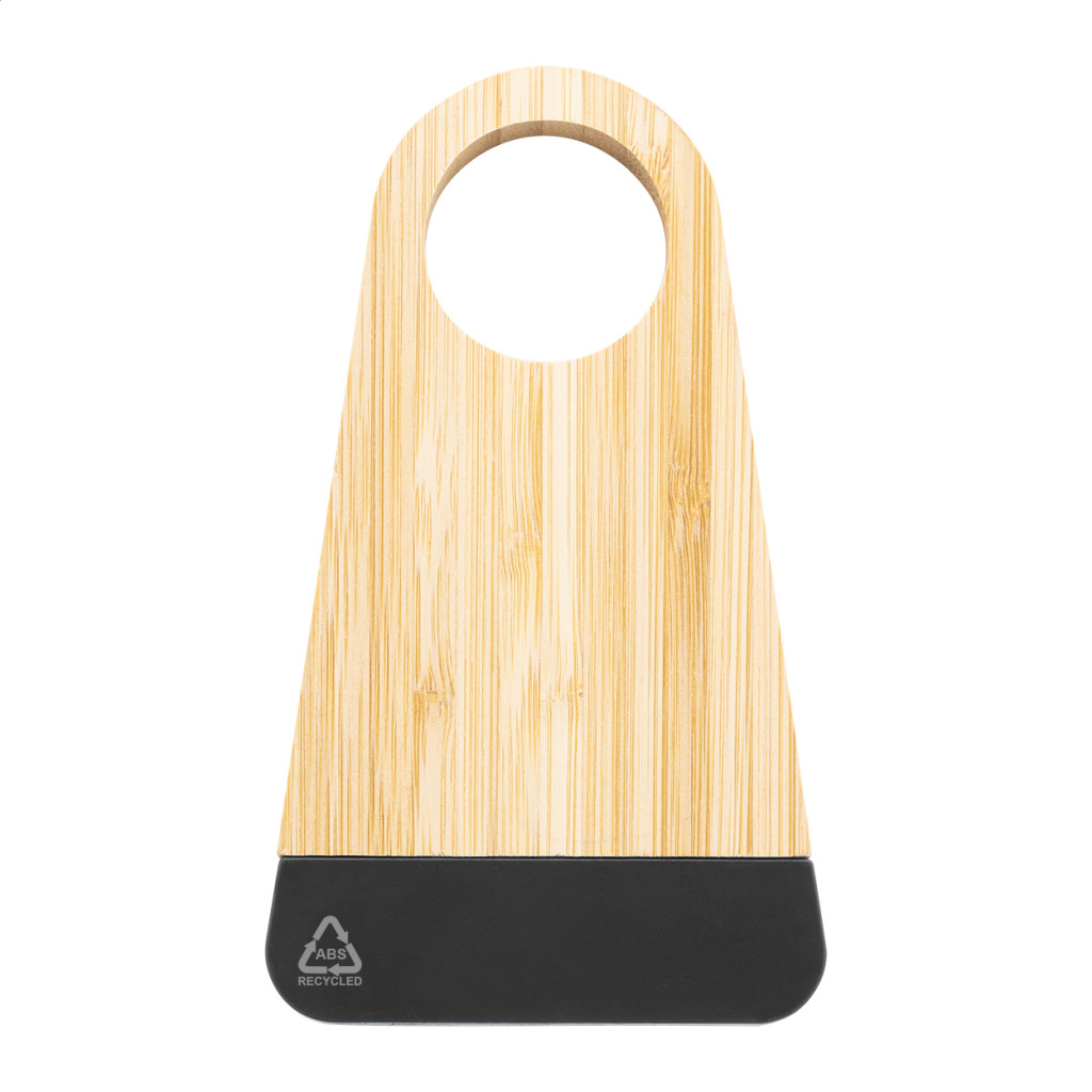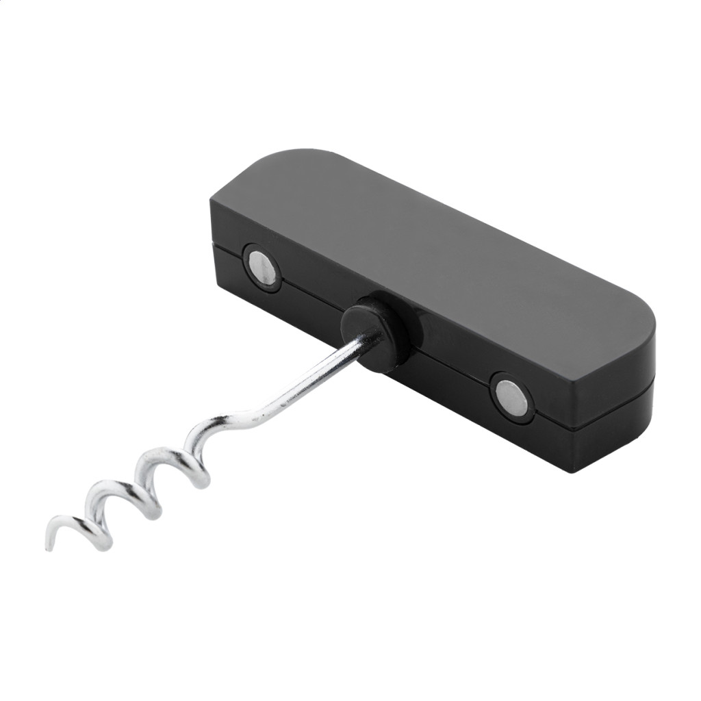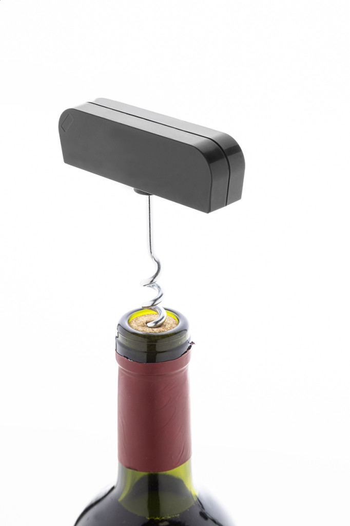 Bambuszból és újrahasznosított ABS műanyagból készült borosüveg tartó rozsdamentes acél dugóhúzóval.