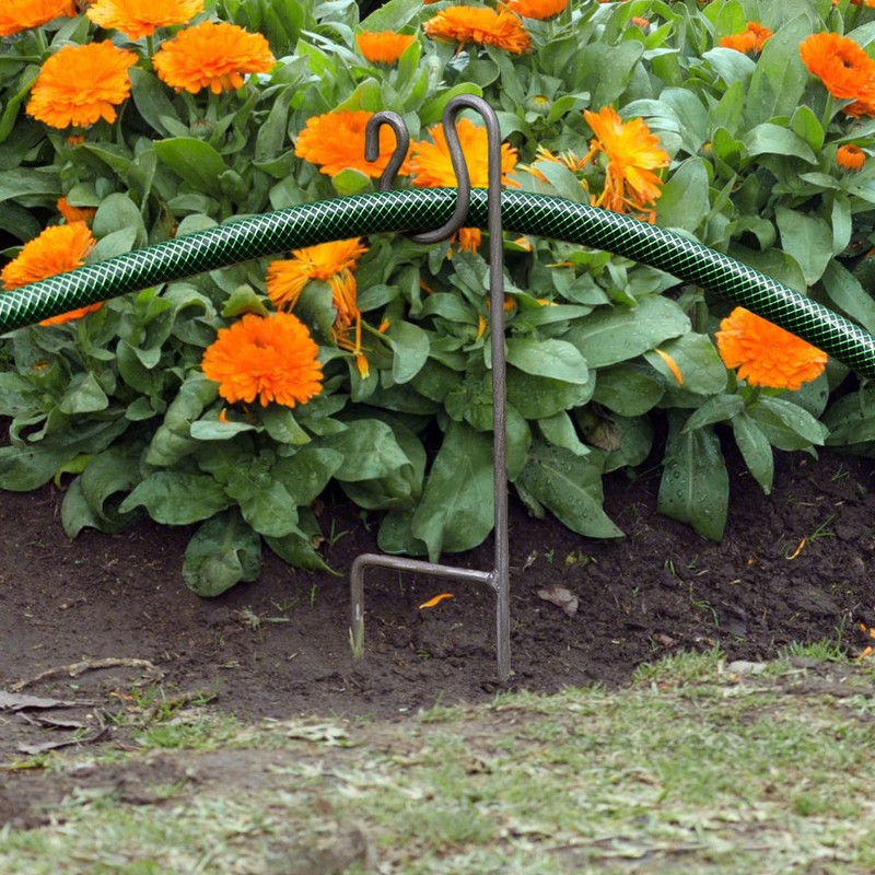 A fém tömlőtartó robusztus, időjárásálló anyagból készült, így egész évben használhatod, anélkül, hogy attól kellene tartanod, hogy a szabadban megsérül. A leszúrható kialakításnak köszönhetően könnyedén rögzítheted a talajba, így nem igényel speciális szerszámokat a telepítése.