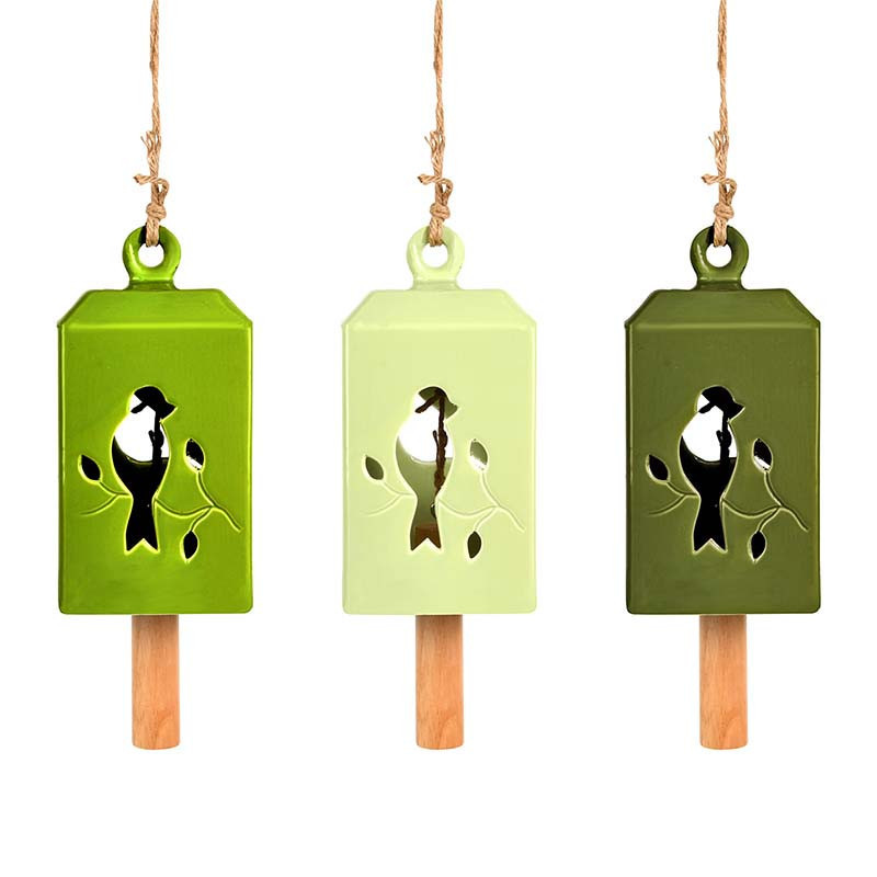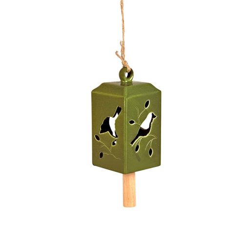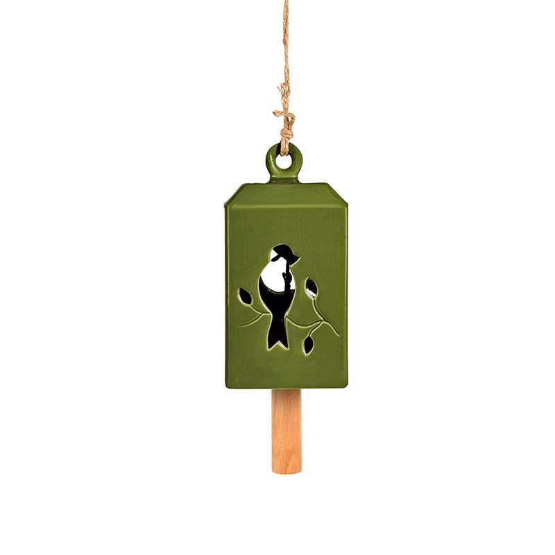 Madaras kerámia szélcsengő, olivazöld