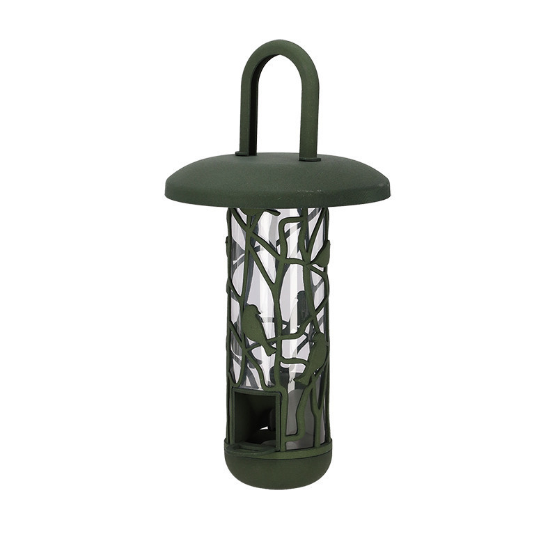 Felakasztható madáretető újrahasznosított anyagból, zöld, 15 x 30 cm. A 100%-ban újrahasznosított anyagból készült madáretető nyitott szerkezetének köszönhetően a madarak két oldalról is hozzáférhetnek az eleséghez. A tetejét felhúzva egyszerűen újratölthető. Az adagoló körülbelül 6 darab, egyenként 20 grammos újrahasznosított műanyag palackból készült. A termék Hollandiában készült. Ajánljuk hozzá a FB628-as cikkszámú leszúrható fa rudat, mely szintén újrahasznosított anyagból készült. A rúd segítségével az etetőt a kert bármely pontjára leszúrhatjuk, és könnyedén át is helyezhetjük.