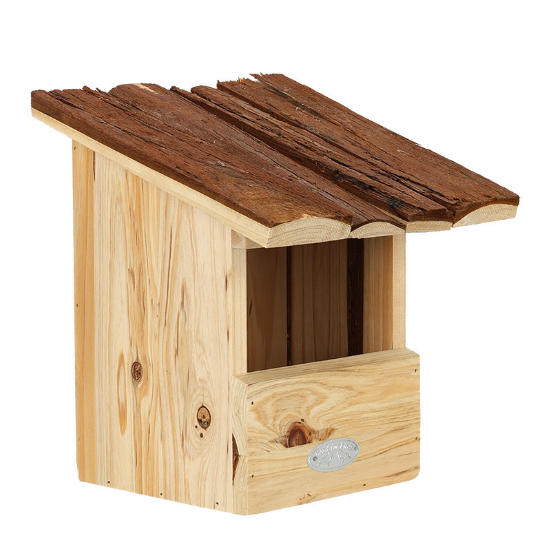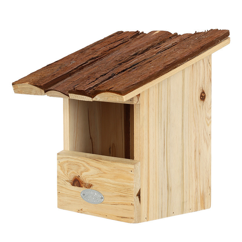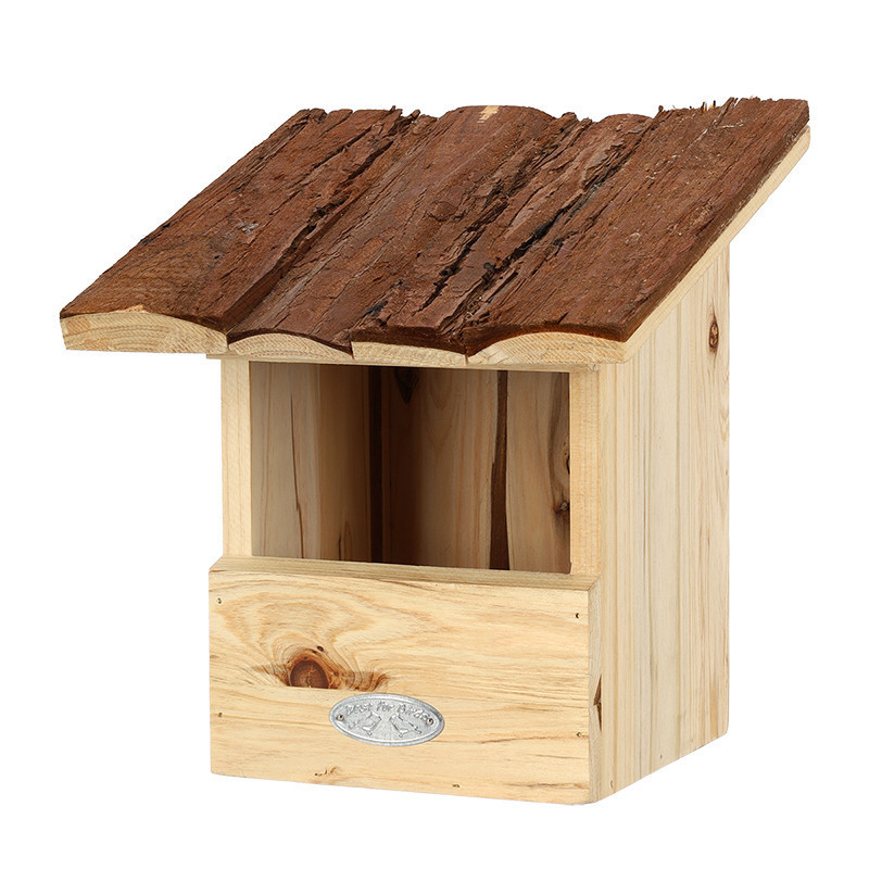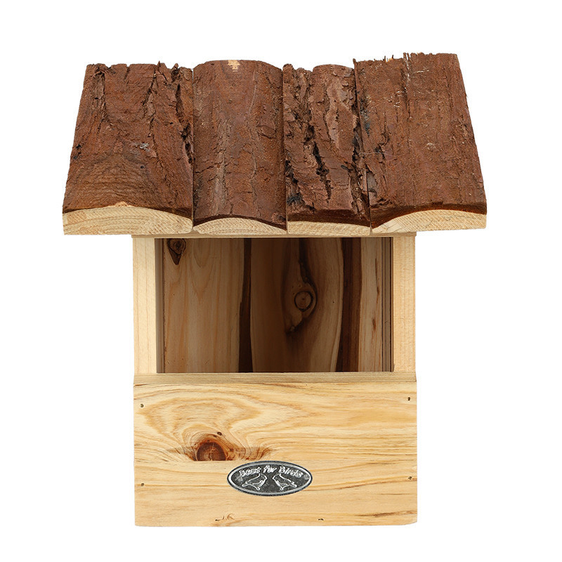 Madárház fakéreg tetővel vörösbegynek. Egy dekoratív madárház nem hiányozhat egyetlen kertből sem. Ez a természetes anyagokból készült madárház remek helyet kínál a vörösbegyek számára a fészkeléshez. A ház felakasztására egy csendes és kissé védett hely a legideálisabb, tehát ne közvetlenül a napra vagy az esős oldalra helyezzük. Az ősz a legoptimálisabb időszak a madárház tisztítására.