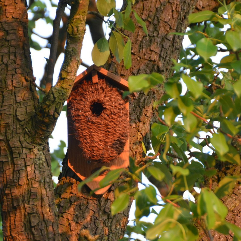 Kókuszrostból és fából készült madárház, amely búvóhelyet és fedezéket ad a kert madarainak. Esősebb időben a tető védelmet nyújt, a kókuszrost bejáraton az állatok kényelmesen megkapaszkodhatnak. Helyezzük el nyáron egy hűvösebb, árnyékos részen vagy télen a kert bármely pontján, a madarak pedig gyönyörű csicsergéssel hálálják meg a gondoskodást.