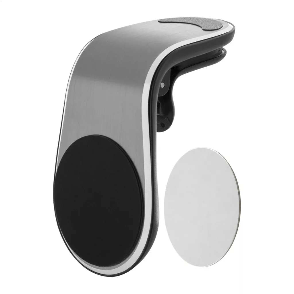Mágneses alumínium autós mobiltartó, szellőzőre rögzíthető. Öntapadó fémlemezzel együtt.