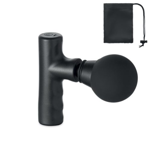 Masszázspisztoly ABS anyagból, 2 sebességfokozattal. Újratölthető 1200 mAh akkumulátorral. RPET tasakban.
