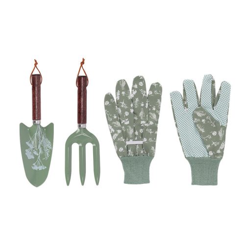 Mezei virág mintás kerti eszköz és kesztyű szett, zöld