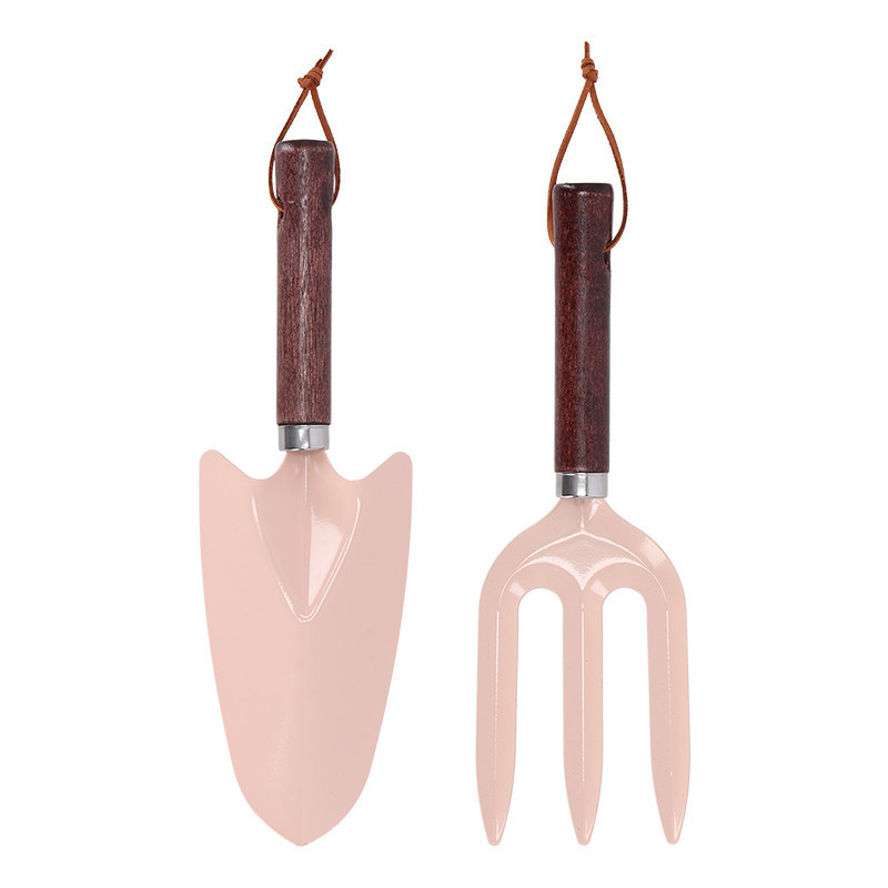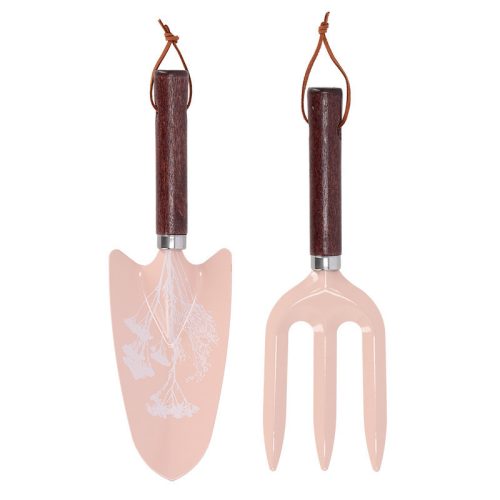 Mezei virág mintás kerti eszköz szett, pink színben. Ez a kerti eszköz készlet kisebb kerti munkák elvégzéséhez ideális. A kézi ásó sokféle feladatra használható, például átültetésre vagy gyomok eltávolítására. A kézi gereblye a talaj feltörésére és lazítására alkalmas. Praktikus bőr akasztóval. A készlet színes ajándékdobozban érkezik.
