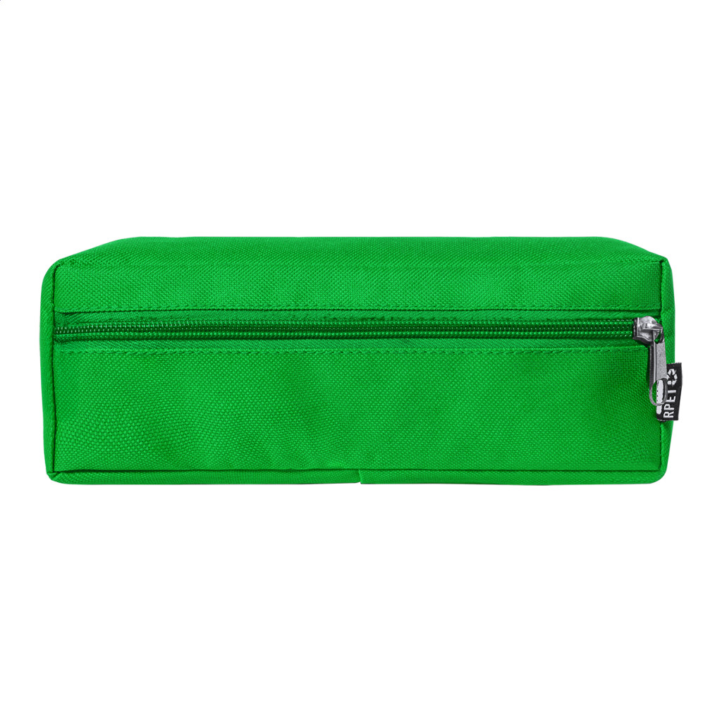 Cipzáros RPET poliészter anyagú tolltartó. 600D RPET poliészter, megkülönböztető RPET címkével.