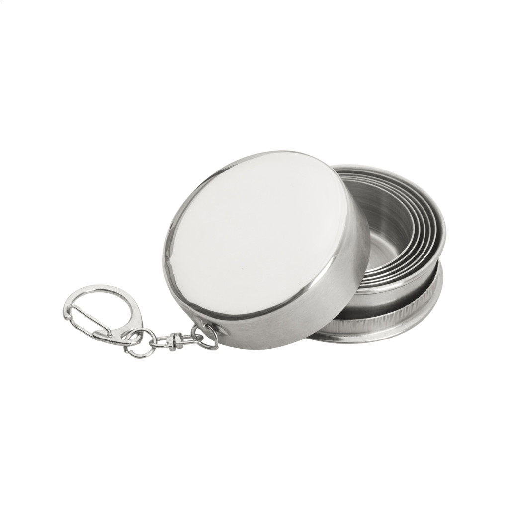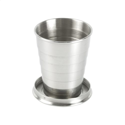 Rozsdamentes acélból készült összecsukható pohár tokban, 70 ml.