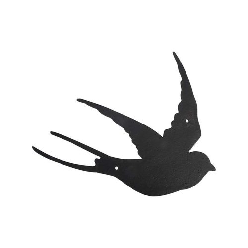 Falra rögzíthető fekete, öntöttvas fecske dekoráció. Dobjuk fel otthonunkat ezzel a különleges dekorációval. Öntöttvas jellegéből adódóan kültéri elhelyezés esetén, a korrózió megjelenésével egy patinásabb, rusztikusabb termék válik belőle.