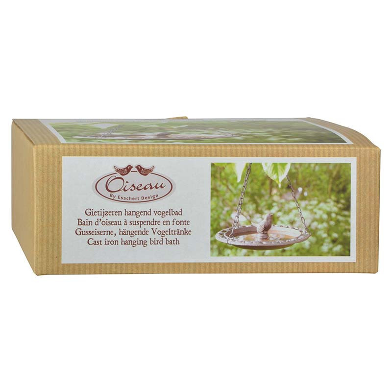 Öntöttvas madáritató,- és etető tál kismadár díszítéssel. Az egyre szárazabb nyarakon és zordabb teleken az állatok egyre kevesebb élelmet és vizet találnak, de egy kis odafigyeléssel könnyen segíthetünk nekik. Kertünk pompás dekorációja lehet és a madarakat is közelebb csalogatja. Öntöttvas jellegéből adódóan külső elhelyezés esetén, a korrózió megjelenésével egy patinásabb, rusztikusabb termék válik belőle. Az itatót díszdobozban szállítjuk.