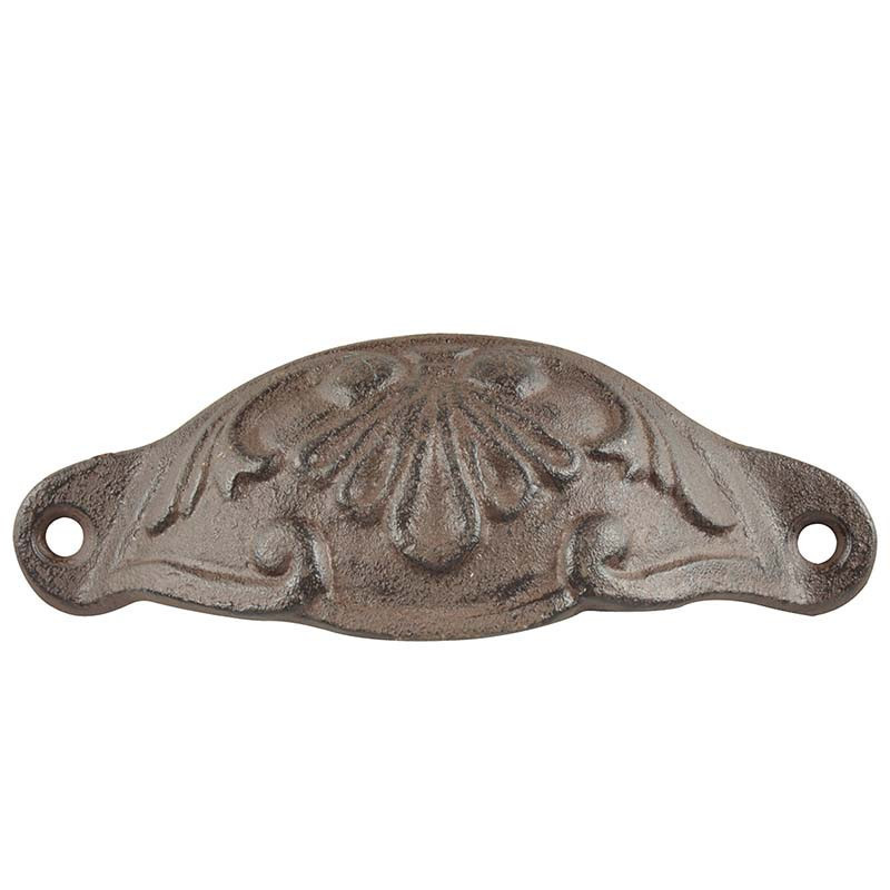 Rusztikus stílusú öntöttvas fogantyú, amely otthoni fiókos szekrényeinkre felszerelhető. Dekoratív, különleges megjelenésű darab, amely a legegyszerűbb fiókokat is egyedivé teszi. A ház minden pontjához illik, legyen szó akár a fürdőszobáról, hálószobáról vagy az előszobáról. A termék a fiókokra könnyen felszerelhető, antik barna színben kapható. Öntöttvas jellegéből adódóan külső elhelyezés esetén, a korrózió megjelenésével egy patinásabb, rusztikusabb termék válik belőle. Tedd vele stílusossá otthonodat! TIPP: A felszereléshez szükséged lesz az ehhez megfelelő kiképzésű csavarra is. A termék a csavart nem tartalmazza.