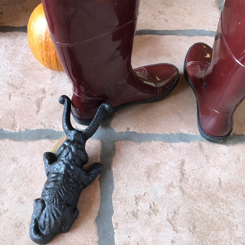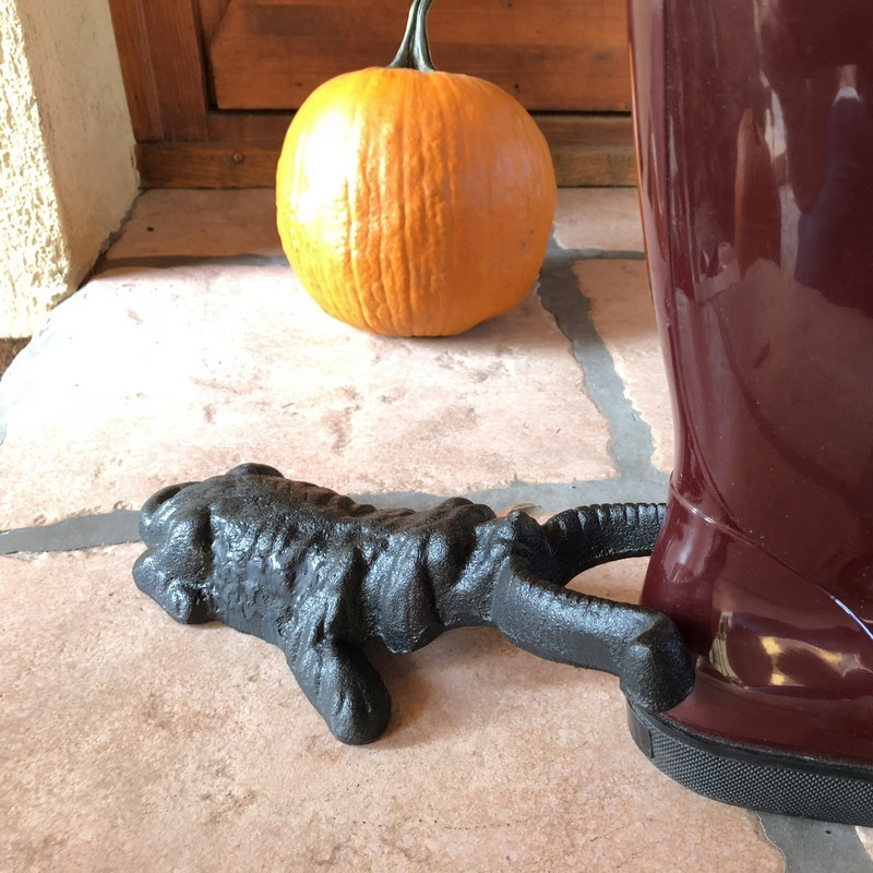 Kutya formájú öntöttvas csizmalehúzó, amely praktikusan működik és megkönnyíti csizmáink és egyéb cipőink levételét. Pazar kialakítású, külső,- és belső használatra egyaránt alkalmas, a ház minden bejáratához illik. Öntöttvas jellegéből adódóan külső elhelyezés esetén, a korrózió megjelenésével egy patinásabb, rusztikusabb termék válik belőle. A csizmalehúzó könnyen tisztítható, fekete színben kapható. Nem csupán előnyös kellék, de egyedi dekoráció is.