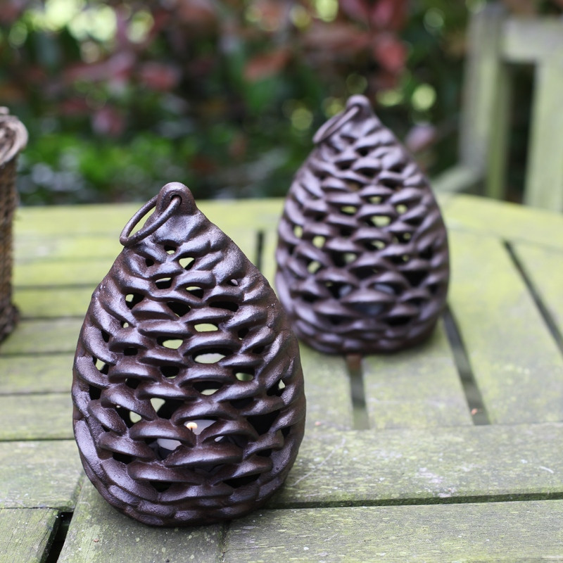 Öntöttvasból készült, toboz formájú mécsestartó, amely meghitt, otthonos hangulatot áraszt Helyezzük el a nappaliban vagy a hálószobában és tegyünk a toboz alá egy teamécsest. Időtálló formája miatt minden stílushoz kiválóan passzol, varázsoljunk vele egy kis meghittséget otthonunkba. Öntöttvas jellegéből adódóan, kinti használat esetén a korrózió megjelenésével egy patinásabb, rusztikusabb termék válik belőle. A termék a mécsest nem tartalmazza.