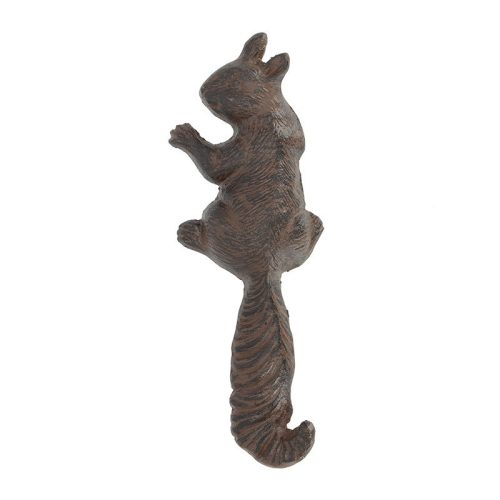 Öntöttvas mókus akasztó. Az öntöttvas lakáskiegészítők valódi rusztikus hangulattal töltik meg az otthont. Ez a mókust formáló akasztó feldobja az előszoba, a mosdó vagy a konyha falát egyaránt. A 2 rögzítő furat segítségével könnyedén felhelyezhető a falra.