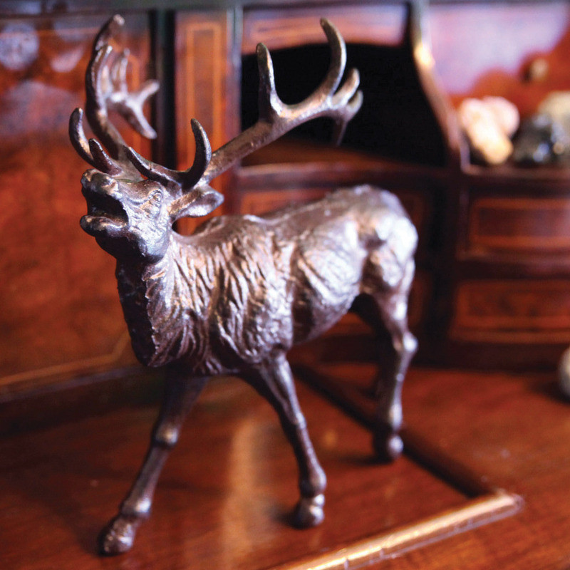 Kifinomult kidolgozású öntöttvas szarvas, amely pompás dekorációja lehet otthonunknak. Modern és vidékies stílusú házakban egyaránt exkluzív kiegészítő, kifejezetten ajánljuk a vadászat kedvelőinek. Külső és belső használatra is alkalmas, öntöttvas jellegéből adódóan kültéri elhelyezés esetén, a korrózió megjelenésével egy patinásabb, rusztikusabb termék válik belőle.