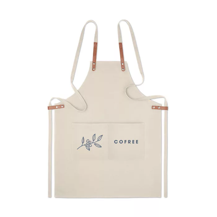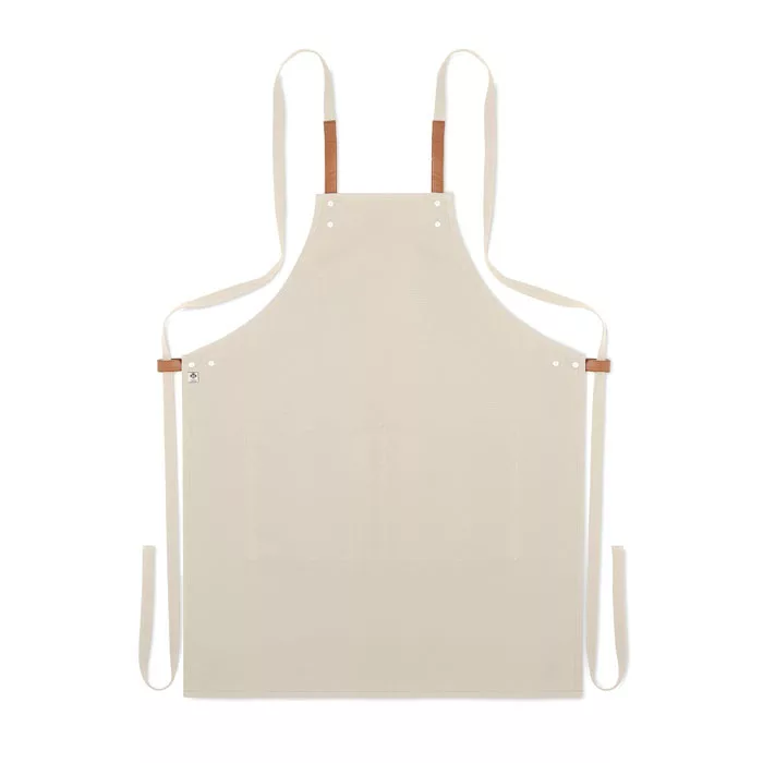Állítható konyhai kötény 2 elülső zsebbel, 340 g vastag organikus pamut/vászon anyagból.